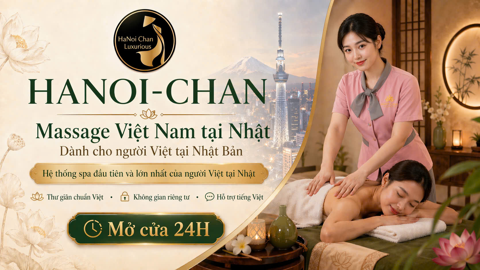 HanoiChan hệ thống spa dưỡng sinh Đầu tiên và lớn nhất của người Việt Nam tại Nhật Bản.