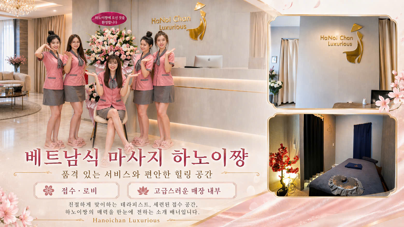 저희는 고객님께 최고의 힐링과 휴식 경험을 제공하는 것을 자랑스럽게 생각합니다. Hanoi Chan에서는 해외 고객님도 따뜻하게 환영하며, 정통 베트남 스타일 마사지 서비스를 편안하게 즐기실 수 있도록 정성껏 모시고 있습니다.